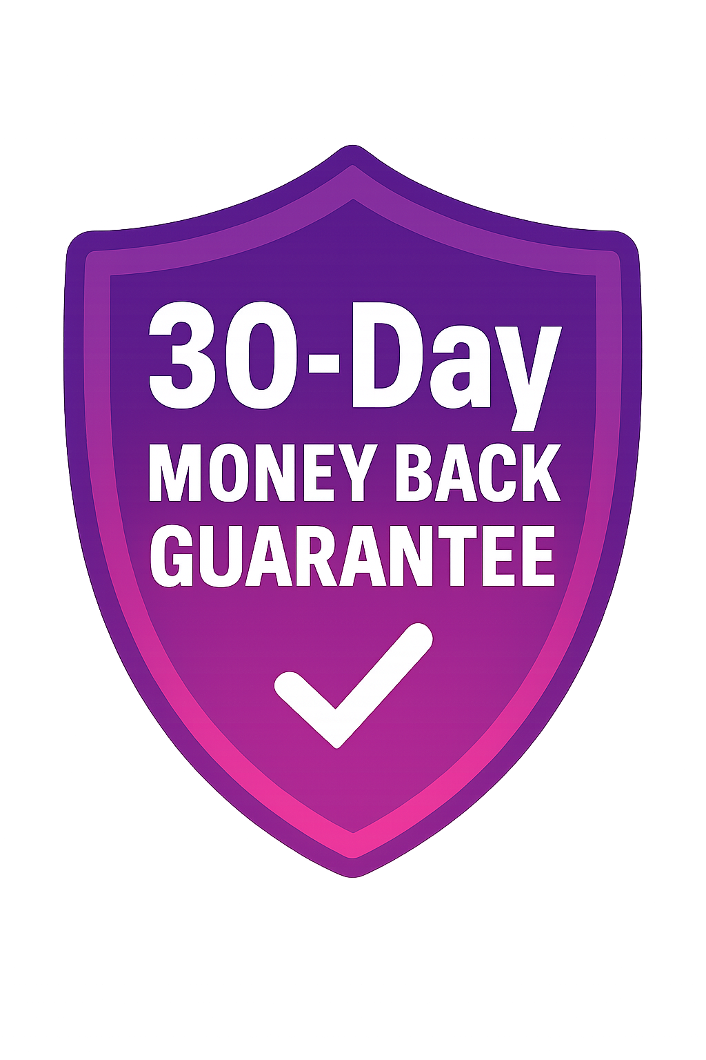 You’re covered by our 30-Day Money-Back Guarantee. If you’re not satisfied, you get your money back — no questions asked.